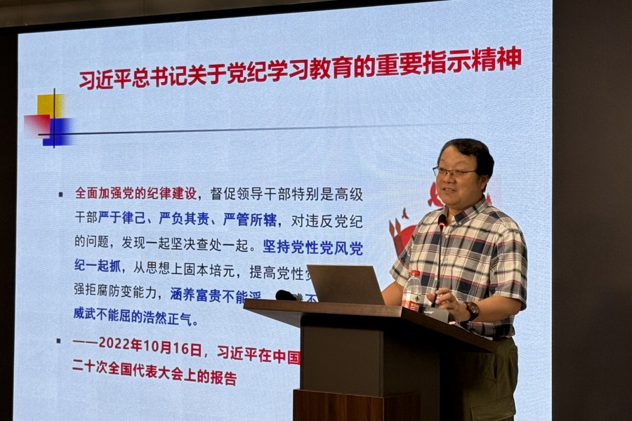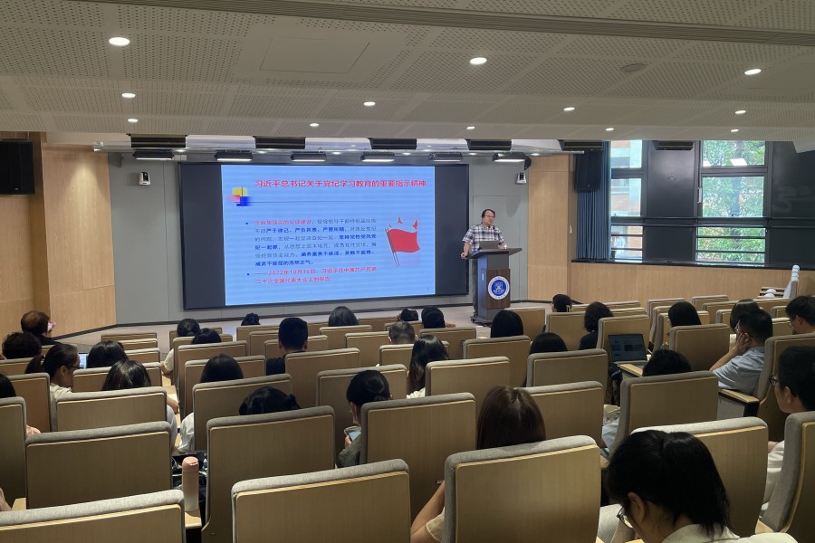 王仕民以“党纪学习教育方法论”为题作专题报告。他首先阐述了党纪学习教育的基本问题,强调党纪学习教育不仅是提高党员干部党性修养和纪律意识的重要途径,也是确保党的先进性和纯洁性的必然要求。接着,深入解读了新修订的《中国共产党纪律处分条例》,要求全体党员干部深入学习、准确把握,切实增强纪律意识和规矩意识。在谈到遵守党纪、坚持底线、不越红线时,王仕民院长强调,作为党员干部,要时刻绷紧纪律这根弦,坚守政治底线、道德底线和法纪底线,做到心中有戒、行有所止。他通过具体案例,警示大家要严于律己、警钟长鸣,切实做到不越红线、不触高压线。最后王仕民提出党纪学习教育的主要方法,包括逐章逐条学、联系实际学、以案促学、以训助学、融入日常生活学、交流研讨学、组织集体学、专家辅导学、带着问题学。他强调要将学习成果转化为实际行动,将党纪学习教育融入到教学、科研和管理等各项工作中去,确保学习效果落到实处,为学院事业发展贡献自己的力量。