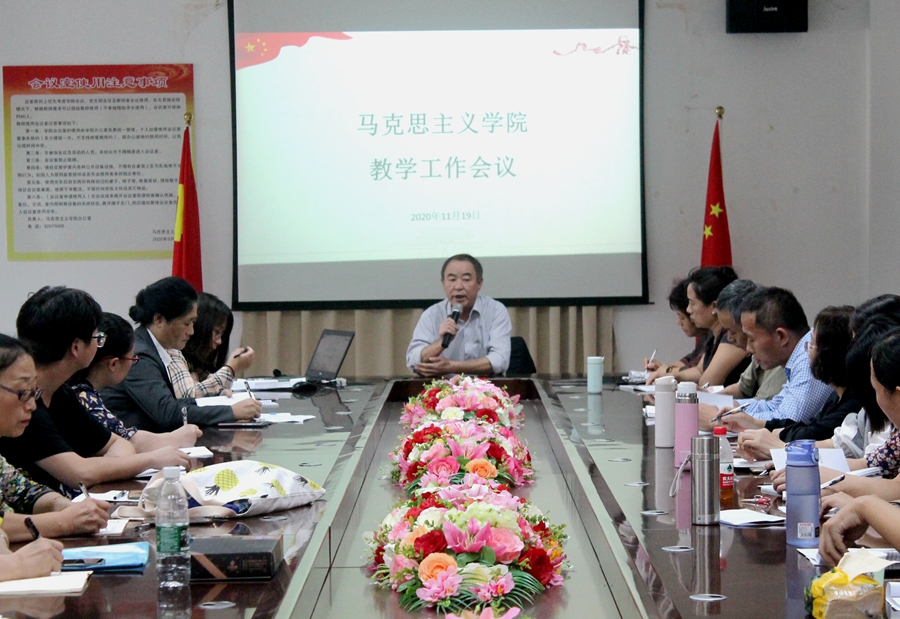 2020年11月19日下午,马克思主义学院在第五行政楼1楼会议室召开了学院期中教学工作检查结果反馈会议。马克思主义学院院长李洪君教授及全体教师参加了会议,会议由院长李洪君主持。