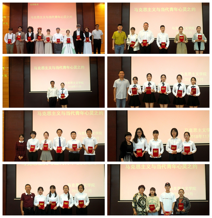 经过两个多小时的角逐,15位评委老师的严格匿名评分,产生了2个一等奖、3个二等奖、4个三等奖。获得一等奖的是由黄亚丽老师指导的舞台剧——伟大的贫困潦倒、钱燕茹老师指导的舞台剧加合唱——无产阶级的宣言书。获得二等奖的是权麟春老师指导的舞台剧——《关于费尔巴哈的提纲》的启迪、郑智华老师指导的演讲——当“00”后的千禧宝宝遇上“10”后的青年人、李明老师指导的演讲——一名青年马克思主义者。获得三等奖的是王相东老师指导的访谈——大学生心中的马克思、岳清云老师指导的采访秀——历代青年对马克思主义的感悟、王璇老师指导的歌曲说唱——马克思是个90后、李付安老师指导的诗歌朗诵——致敬马克思。