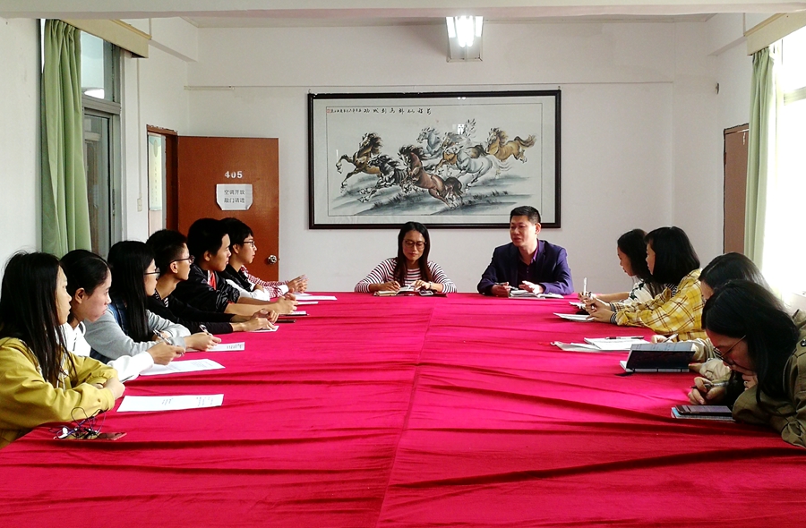 11月2日上午,马克思主义学院在第五行政楼402会议室举行《大学生心理健康教育》师生座谈会。学院副院长余九林、学生处副处长张秋艳、任课教师马晓辉、蒙若珺、刘佼和9名学生代表参加了会议。会议由张秋艳主持。