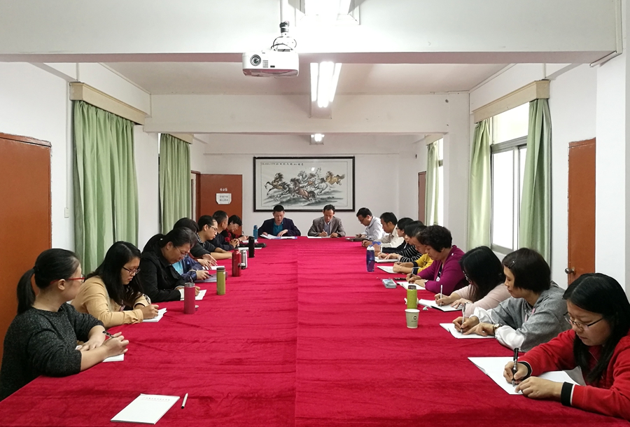 2018年10月18日下午,根据学校党委的部署和要求,为马克思主义学院教师全面学习贯彻习近平总书记在全国教育大会上的讲话精神、习近平总书记给中央美术学院老教授重要回信精神以及进一步提高对新时代中国特色社会主义重大问题的思想认识,加强落实“立德树人”的根本宗旨,马克思主义学院在第五行政楼402会议室召开专题学习会议。学院院长权麟春、副院长王相东、余九林以及全院教师参加了此次会议。会议由余九林支持。