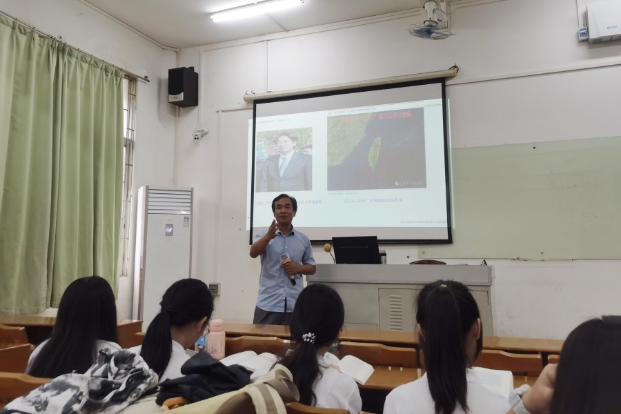 课上,陈流芳老师结合中国人民解放军近期在台岛周边举行的“联合利剑-2024A”实战演练活动导入新课,进而引导学生思考“一国两制”和推进祖国统一的深刻意义。随后,伴随着精心设计的学生抢答环节,他围绕“一国两制”的历史地位、科学内涵等内容进行了全面准确、重点突出、逻辑清晰、深刻生动的讲解,课堂氛围积极活跃,突出学生主体作用,引导学生们学思结合。