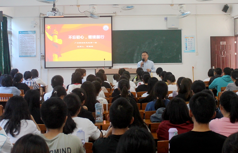 何校长以最近热播剧《长津湖》和辛亥革命110周年纪念大会习近平总书记重要讲话为切入点,通过与学生的讨论互动的方式导入课堂讲授。讲授过程中,何校长非常详细讲解了党的“初心”和“使命”的确立,为之不断奋斗的艰辛历程以及在奋斗历程中做出的三个伟大历史贡献;并且进一步深刻分析了为什么要“不忘初心,牢记使命”,如何做到“不忘初心,牢记使命”;最后,对青年人提出要求,当代青年应该接过革命的接力棒,牢记我党的宗旨,继续先辈的光荣事业,沿着先辈光荣的足迹,为实现中华民族的伟大的复兴梦想矢志前行。
