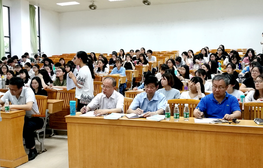 课后,王树荫教授和王冬冬老师进行了亲切交流。王教授对王冬冬老师的教学能力、课堂互动和教学水平给予了肯定,并结合他的教学实践经验,提出了宝贵的意见和建议。他主要提出了三个问题:把教材体系转化为教学体系,实施专题教学;问题设计和课后思考题要紧紧围绕主题,并要照顾到学生前后学习的连贯性;加强教学研究,不断提高专业水平。