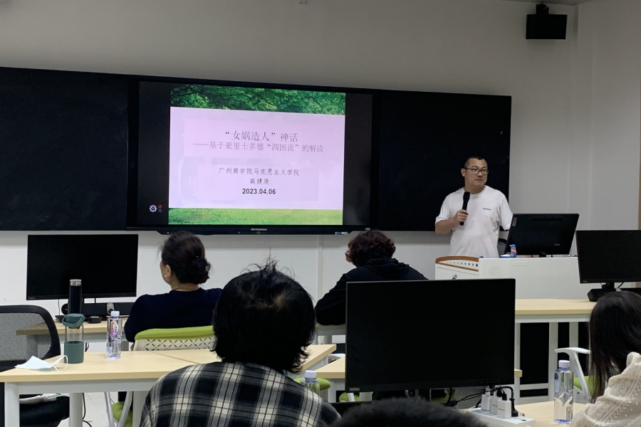 本次学术沙龙的主题是:“女娲造人”神话——基于亚里士多德“四因说”的解读。会议伊始,高健康从三个方面展开解读,第一:为什么探究中国传统神话;第二:“四因说”视野下的女娲造人神话;第三鲁迅女娲造人神话的平等观。高博士引经据典、从点到面逐步召开他对“女娲造人”神话的解读,其分享有深度、有广度、有温度,可谓贡献了一场精神盛宴,与会老师听得津津有味,乐在其中。
