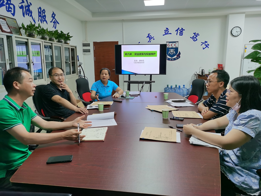 5月29日下午,大学生就业指导课教研室在实训楼107举行2017级《就业政策与权益维护》专题线上教学备课会,全体课程教师参加会议。会议由教研室主任胡桂花主持。