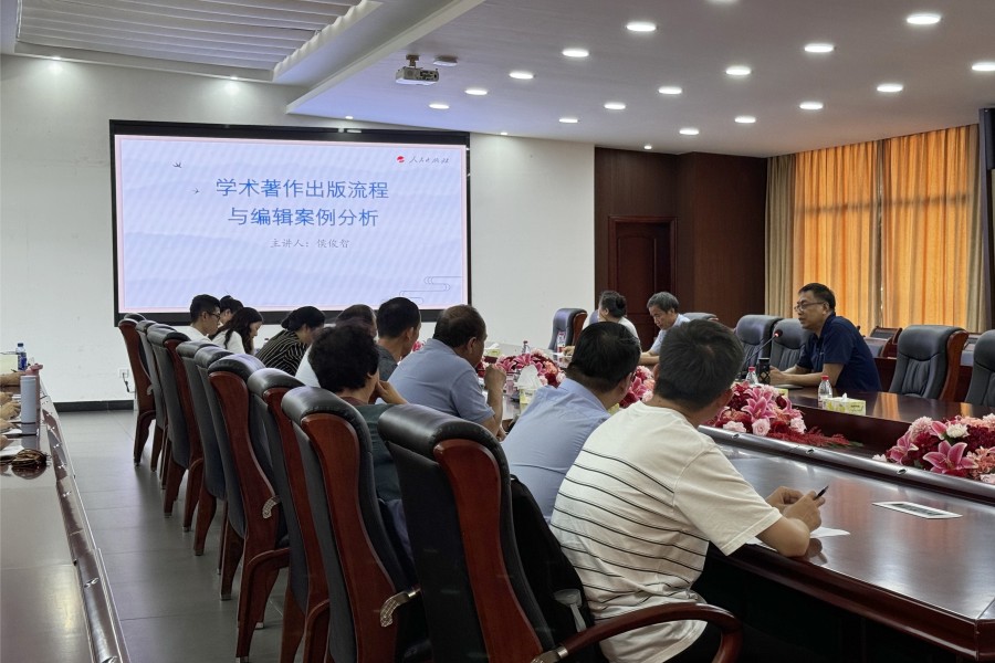 5月13日下午,学术交流中心401会议室迎来了一场主题为“学术著作编辑综述与案例分析”的讲座。本次讲座特邀人民出版社东方出版服务公司经理、中国共产党出版史研究专家侯俊智先生作为主讲嘉宾,校党委书记唐明勇、科研处副处长王龙华、马克思主义学院领导及教师、网络中心部分教师参加了此次学术交流。