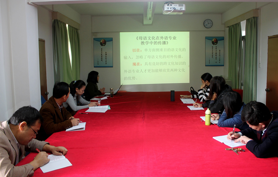 本次会议的报告人共有两位。高慧老师主要讲了在外语专业的大学语文教学中,应该如何提高学生的人文素养和培养语言的实际应用能力。就大学语文如何与其他语文类课程和目的语专业课程进行衔接提出了自己的看法。刘宏娇老师就她所研究的《红楼梦》,与大家分享了“曹雪芹的成功学”。她主要从四个方面对曹雪芹的成功进行了分析,涉及到曹雪芹的身世、知识积累、思想和创作等方面。