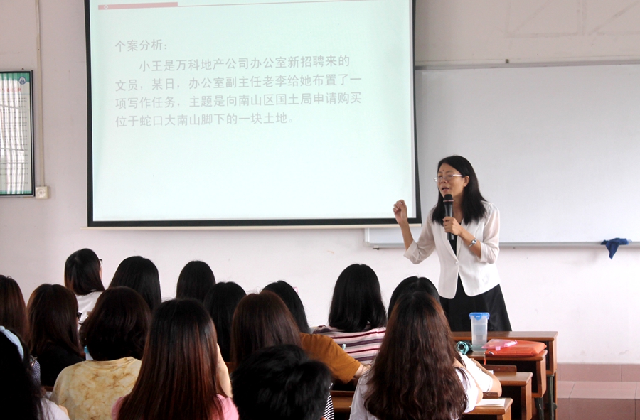 课堂上,许敏云老师首先通过一则案例引导学生思考该材料适用的文种以及该如何来写,由此引出了本课要学习的文种——函。随后,她首先讲解了本课的知识点和重点,让学生了解了函的写作格式以及各个要素的写法,比如怎样写缘由、事项和结语。此外,她归纳了写作格式,对写作要求也有明确的指导。最后,通过一系列的技能训练和写作训练,让学生真正掌握该文种的写作方法。