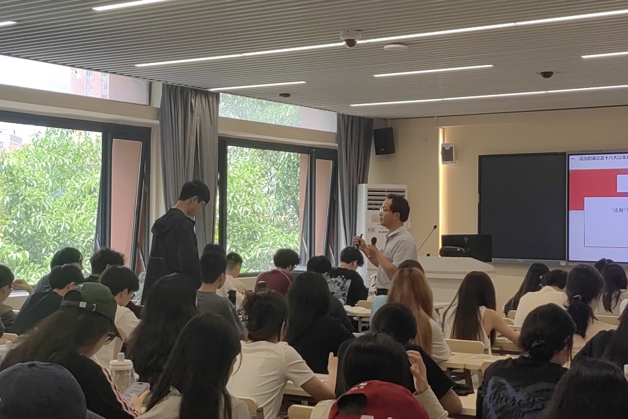 公开课授课内容为第九章全面依法治国第一节。魏洪源以《法制日报》更名导入阐释由“法制”到“法治”的意义,从历史逻辑和实践逻辑引导学生深刻认识新时代全面依法治国的重要性,中国特色社会主义法治道路是唯一正确道路。授课过程中,魏洪源老师创设AI场景,巧用问题、案例及具有感染力的图片等丰富教学内容,使抽象理论具象化,激发了学生们的学习兴趣,课堂氛围活跃。