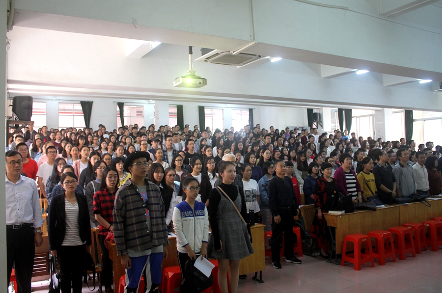 10月18日下午,我校第四期“信仰教育研习班”开班仪式暨宣讲大会在第一教学楼107教室隆重举行。华南师范大学马克思主义学院刘传广教授应邀为我校学员作题为“我读《共产党宣言》”专题报告。我校马克思主义学院院长权麟春、副院长王相东、余九林,全体思政课教师以及460多名研习班学员参加了大会。大会由余九林主持。