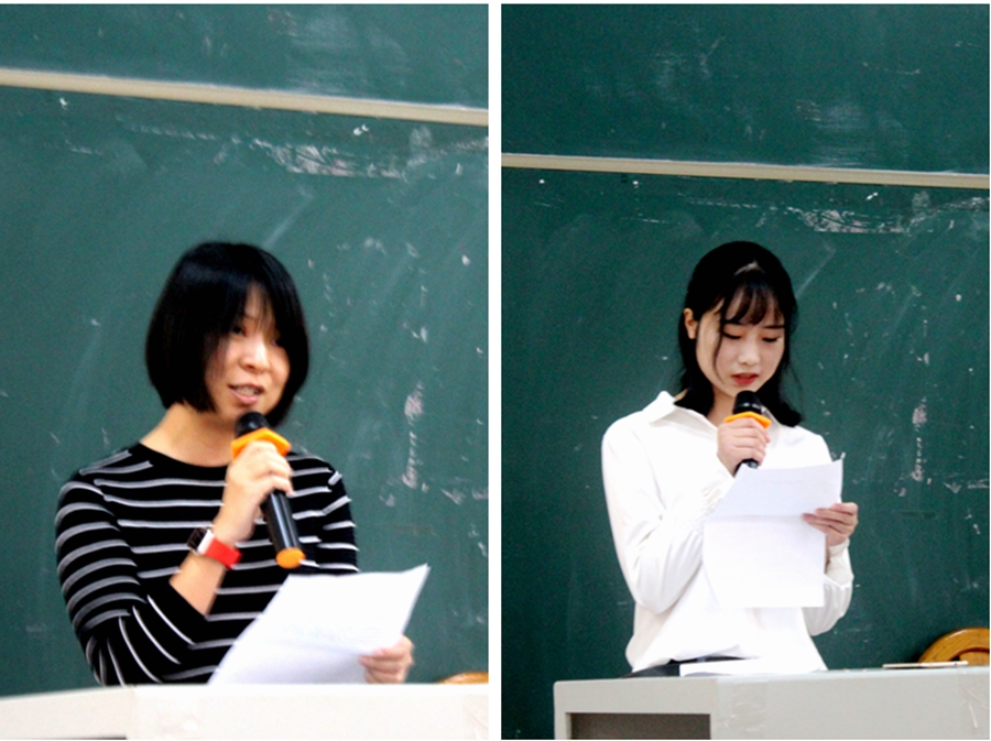 信仰导师代表王璇老师(左),学员代表余洁(右)发言