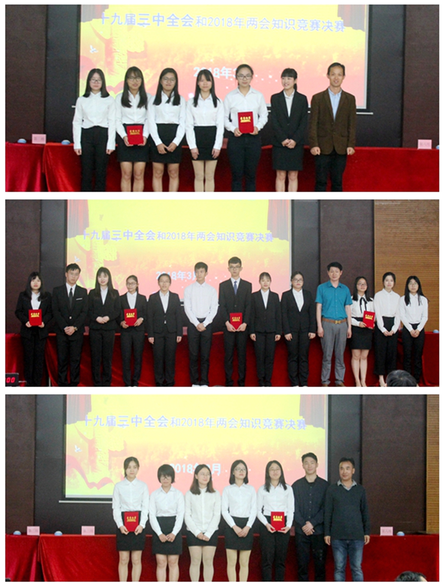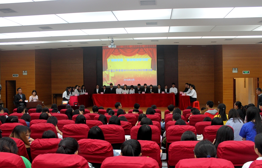 2018年是全面贯彻党的十九大精神的开局之年,也是改革开放40周年,还是决胜全面建成小康社会、实施“十三五”规划承上启下的关键一年。为了认真贯彻党的十九届三中全会精神和2018年“两会”精神,引导大学生关注国家时政热点,全面把握党情和国情,强化大学生的“四个意识”,深入理解习近平新时代中国特色社会主义思想,进一步坚定大学生马克思主义信仰,我校马克思主义学院面向全校举办了党的十九届三中全会和2018年“两会”知识竞赛。