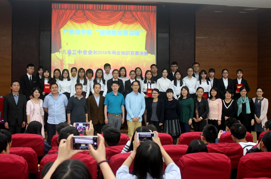 3月21日经过严格的初赛笔试选拔,8支代表队脱颖而出,进入决赛。3月29日中午,知识竞赛决赛在四教110和220两个报告厅隆重举行,马克思主义学院院长权麟春,副院长王相东、余九林出席了本次比赛,全体思政教师、信仰教育研习班700多名学员观看了本次比赛,比赛由许前进、王璇主持。