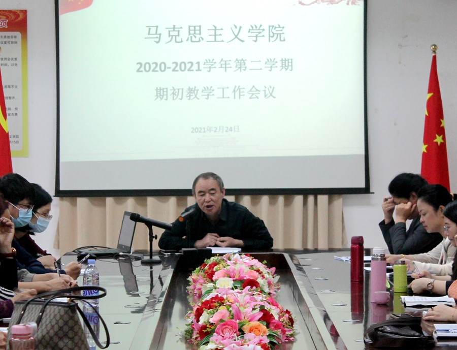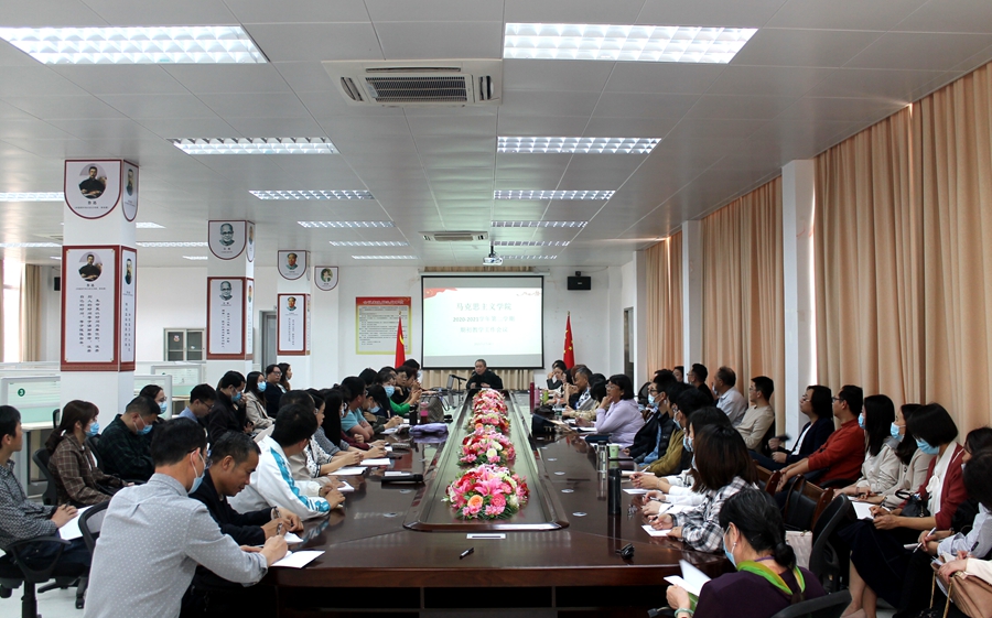 2月24日下午,马克思主义学院在第五行政楼一楼会议室,召开学院全体教师教学工作会议,会议由李洪君院长主持,学院全体教师参加。