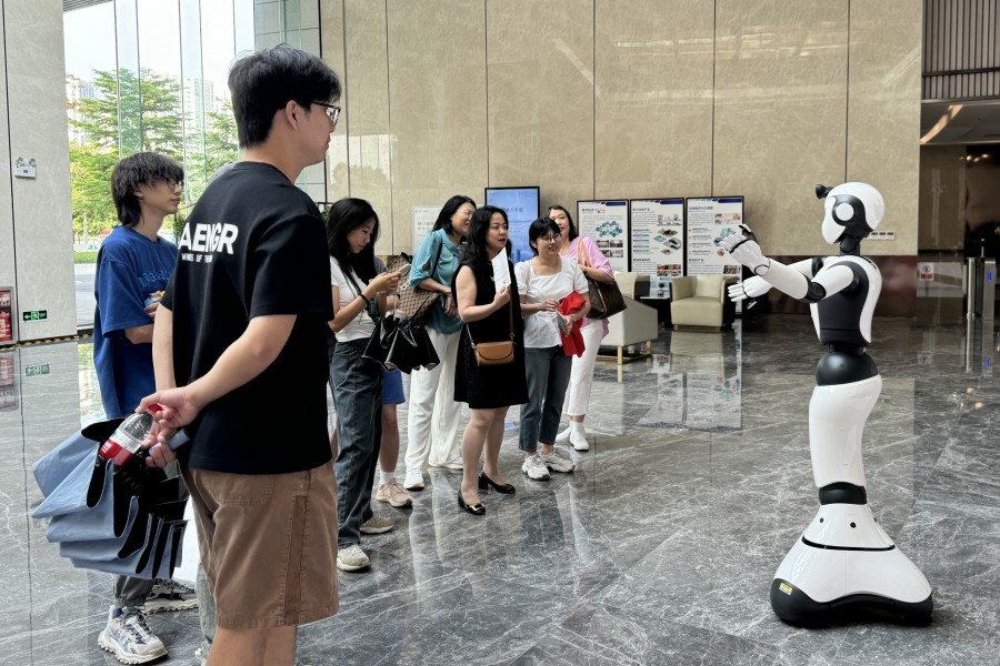 观看了宣传片之后,讲解员现场为大家介绍了中新广州知识城的总体发展规划、知识城的产业布局等情况,目前已建设成有中国特色创新发展模式的智慧城市。参观过程中,学生们或聆听讲解,或驻足观看,或提问讨论,或动手操作。行以致知,理解知识城是如何以知识经济为创新模式,汇聚高端产业与人才,打造一座经济、人文与生态高度和谐及可持续发展的城市。师生携手,通过提问讨论,了解产业发展、新能源汽车、生物制药、节能环保、历史文化等相关领域的知识。实践求真,同学们通过操作相关的演示设备以及与人工智能互动,观看相关实物模型,既了解文化知识,同时在自然人文、工艺设计当中体会到美的感受。