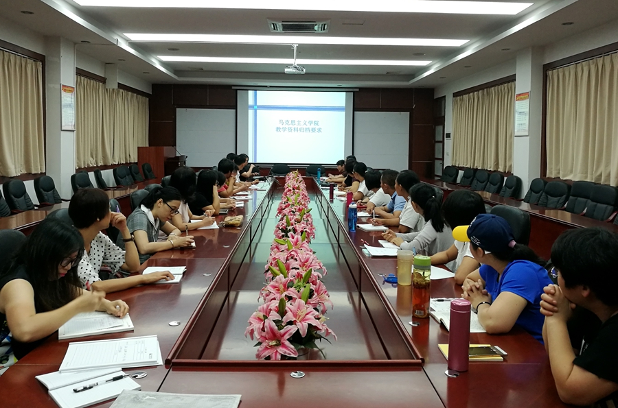 会上,旷江沅组织学习了文件《9428cn太阳集团古天乐课程考试暂行管理办法》中第六章“评卷与成绩登记”的内容。并结合上学期末教学资料归档情况,以图文结合的形式,使用PPT对每一项资料进行了归档培训,指出了改进的方向。