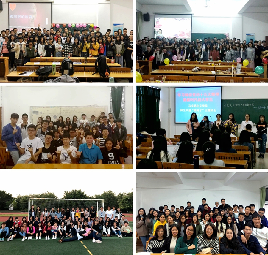 教师积极参加班级的主题班会、座谈会、交流会,了解学生的生活情况,把握学生思想动态,与辅导员加强沟通合作,做学生的生活贴心人。权麟春利用周六、周日时间和学生一对一面谈,了解学生的学习、生活等情况,为每一位学生指明前进的方向,制定大学期间努力的目标。副院长余九林与16金融学6班结成对子,从两个教学案例《郑德幸之死》和《带刀的大学生》入手,结合大学生容易犯的错误,真诚告诫大家要懂得普及安全知识,确保生命安全。同学们对正确掌握安全防范知识有更深入的了解,也增强了生安全意识。他还教育学生讲文明、讲卫生,有长远目标和计划人生规划,要树立正确的生活观,追求健康的生活方式,培养广泛的兴趣爱好,合理安排课余时间,摒弃不良生活习惯。这次的结对子活动为激发学生热爱祖国、热爱学校、热爱学习、热爱生活之情奠定了基础。