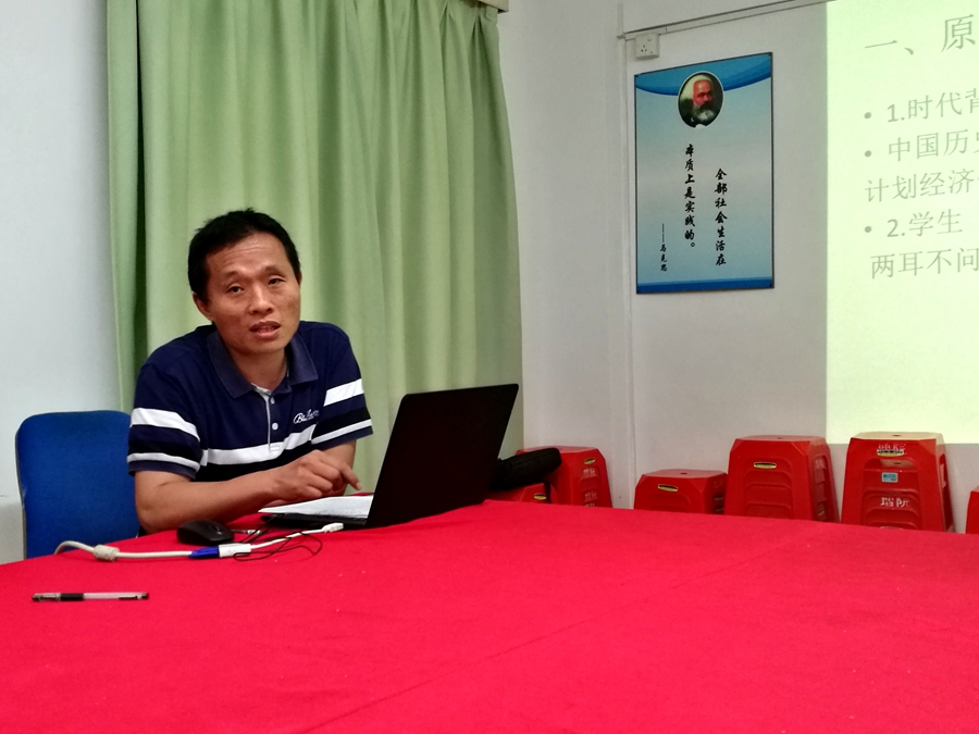 教学和科研是教师的生存之道。通过读书提高老师的科研能力,进而提升老师的教学水平。2018年5月31日,马克思主义学院思政课教研室在第五行政楼402会议室举行了读书教研活动,院长权麟春、副院长王相东和余九林以及全体思政课老师参加了这次活动。会议由思政教研室主任陈流芳主持。
